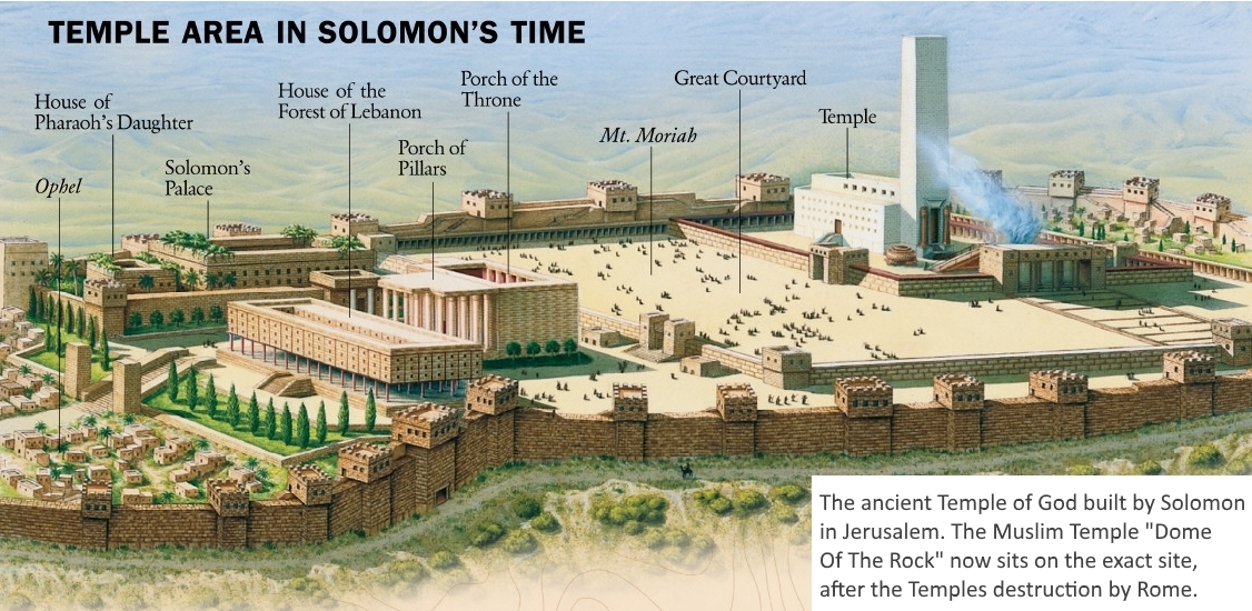 This is an artists conception of what the ancient Temple of יהוה built by King David's son Solomon looked like for 1100 years before the birth of Christ, and 70 years after. The Muslim Dome of the Rock